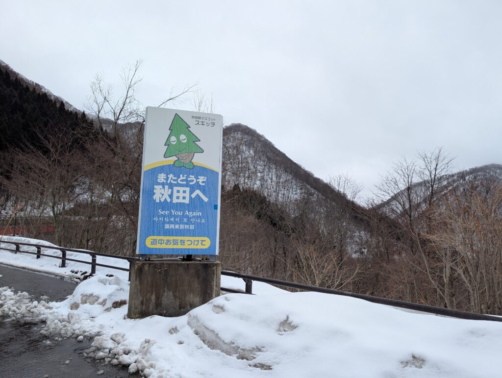 雪景色を横目に県境を越えて秋田へ向かいます。
